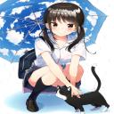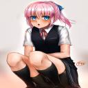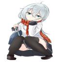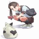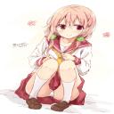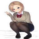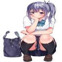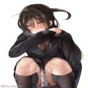 【股間が気になる】しゃがんでるJK達の二次エロ画像