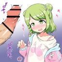 【圧が凄い】勃起した極太チンポを間近に見せつけられて照れる女子の二次エロ画像